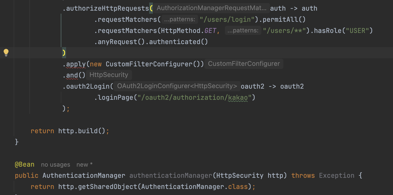 문제 2. Spring Security 5.7 버전 이상은 AuthenticationManager를 직접 가져오는 방식이 아닌 Bean으로 따로 등록해야 정상 동작